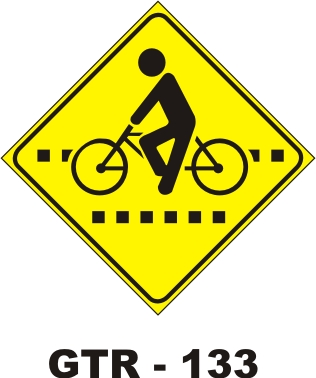 Placa de Sinalização de Trânsito, advertência, padrão DNIT, dimensões de 0,5 x 0,5 m, 0,6 x 0,6 m, 0,8 x 0,8 m ou 1,0 x 1,0 m.  Confeccionada em chapas de aço, adesivo refletivo grau engenharia ou prismático, legendas, contornos e pictogramas em preto fosco. Fundo pintado em preto fosco, com identificação de data/fab. para rastreabilidade. Opcional o fornecimento de suportes em Metalon ou madeira e acessórios.