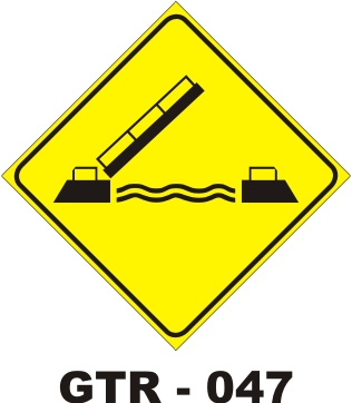 Placa de Sinalização de Trânsito, advertência, padrão DNIT, dimensões de 0,5 x 0,5 m, 0,6 x 0,6 m, 0,8 x 0,8 m ou 1,0 x 1,0 m.  Confeccionada em chapas de aço, adesivo refletivo grau engenharia ou prismático, legendas, contornos e pictogramas em preto fosco. Fundo pintado em preto fosco, com identificação de data/fab. para rastreabilidade. Opcional o fornecimento de suportes em Metalon ou madeira e acessórios.